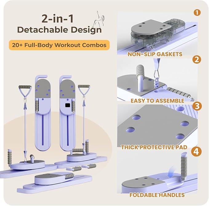 • Goodbye Clutter! Your Full-Body Gym in One Device. Burn fat, tone muscle, and build strength effortlessly. This 2-in-1 wonder combines 6 functions (like a Pilates board & ab bench) for 20+ targeted exercises – sculpt arms, legs, core, and glutes without bulky equipment.