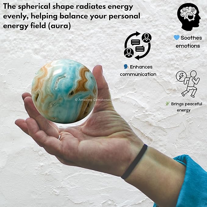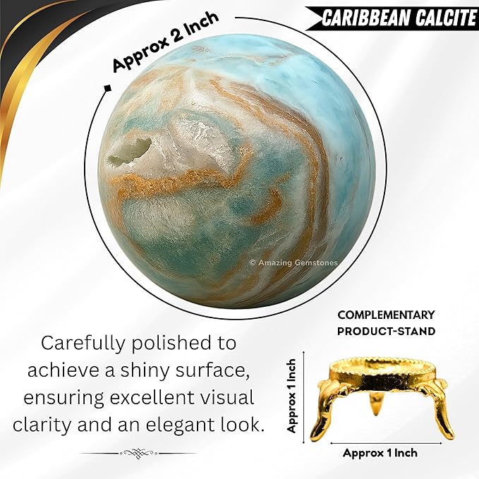 Amazing Gemstone Caribbean Calcite Crystal Ball with Stand - 2" Inches Crystal Sphere Meditation Balls for Witchcraft and Decorative Balls