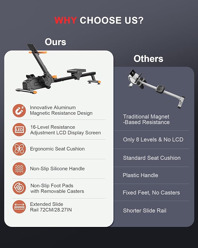 • Compact & Foldable Rowing Machine for Home – This 3-in-1 foldable rowing machine is designed for small spaces, reducing footprint by 20% while providing 16 adjustable resistance levels. Perfect for apartments or home gyms, it’s one of the best rowing machines for home use that combines performance and easy storage.