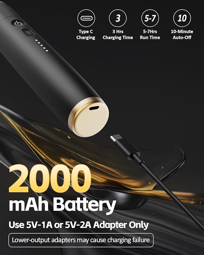 • Brushless Motor & Long Battery Life: Powered by a powerful brushless motor and a 2000mAh battery, enjoy 5–7 hours of use on a single 2.5-hour charge. Includes a 10-minute auto shut-off for safety and operates quietly (<55dB) so you can relax fully