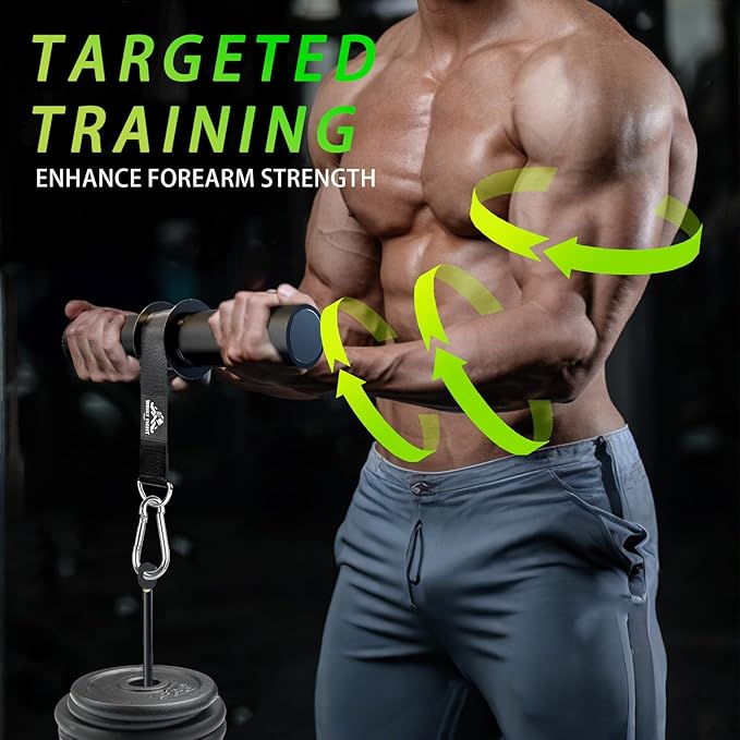 • 🔄 Dynamic Wrist Roller for Forearm Isolation Use for wrist rolls, curls, reverse curls, and isometric holds to directly target the wrist flexors, extensors, and surrounding stabilizer muscles. Whether you want mass, definition, or endurance—this tool delivers.