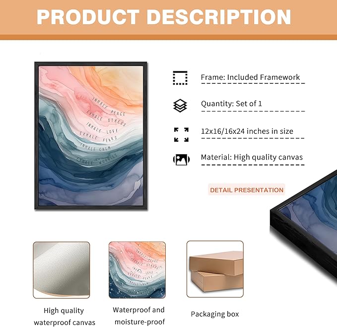 • 【Therapist Office Wall Decor】: This uplifting artwork incorporates positive affirmations and soothing tones to foster a peaceful and therapeutic atmosphere. Perfect for meditation rooms, calming corners, therapy offices, yoga studios, apartment or badroom wall decoration.
