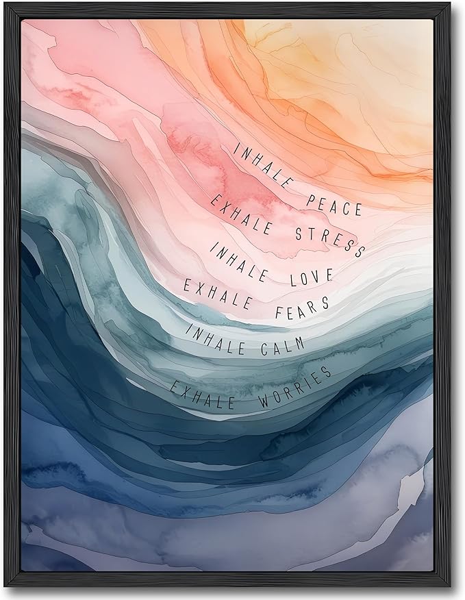 Mental Health Wall Art, Therapy Office Pictures Wall Decor, Inhale Exhale Art Paintings, Canvas Prints, Therapist Artwork for Meditation Room Calming Corner Decoration, Floating Framed 16x24 Inch