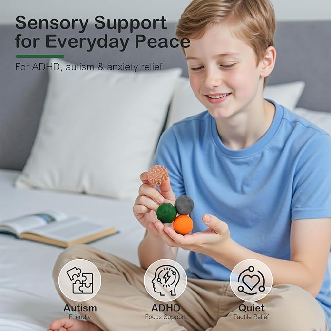 • Tactile Sensory Experience – Each ball offers a different surface texture to provide satisfying sensory input, ideal for ADHD, skin-picking, autism support, or long office hours
