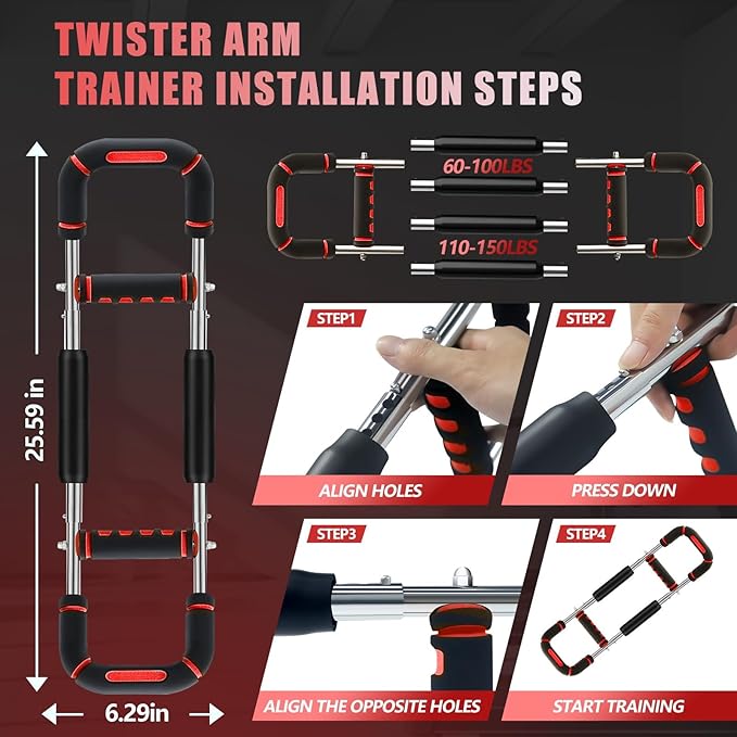 2025 Pro Twister Arm Trainer, Adjustable Power Twister Bar, Chest Shoulder Arm Workout Equipment, Portable Detachable Upper Body Fitness Machine for Home & Gym