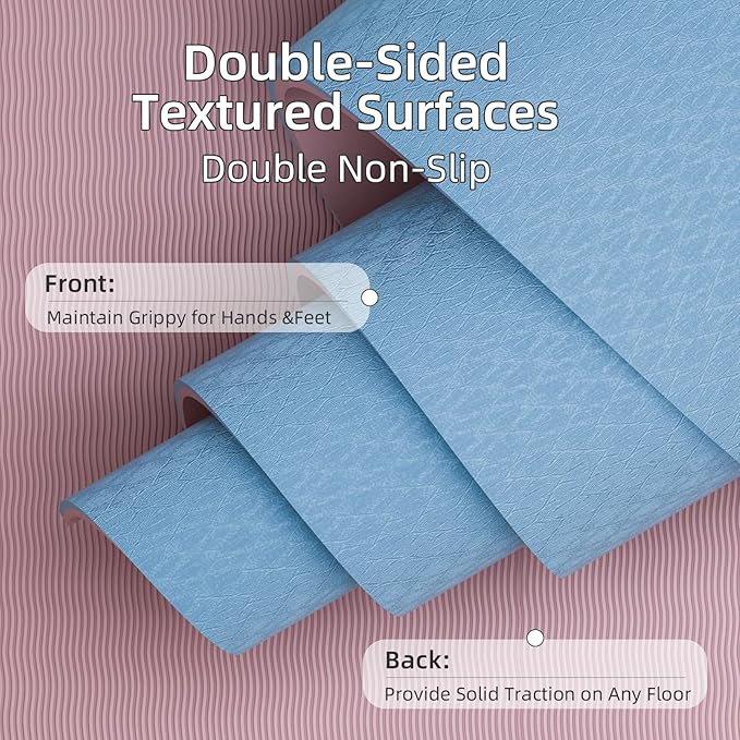 • 【Double-Sided Non Slip Design】: The design of anti-skid texture on both sides on the back features good cushioning and optimal grip, ensuring that you stay in place during even the challenging poses, allowing you to focus on your breath and movement. Our non slip yoga mat is suitable for hot yoga, pilates, and any indoor or outdoor fitness routines.