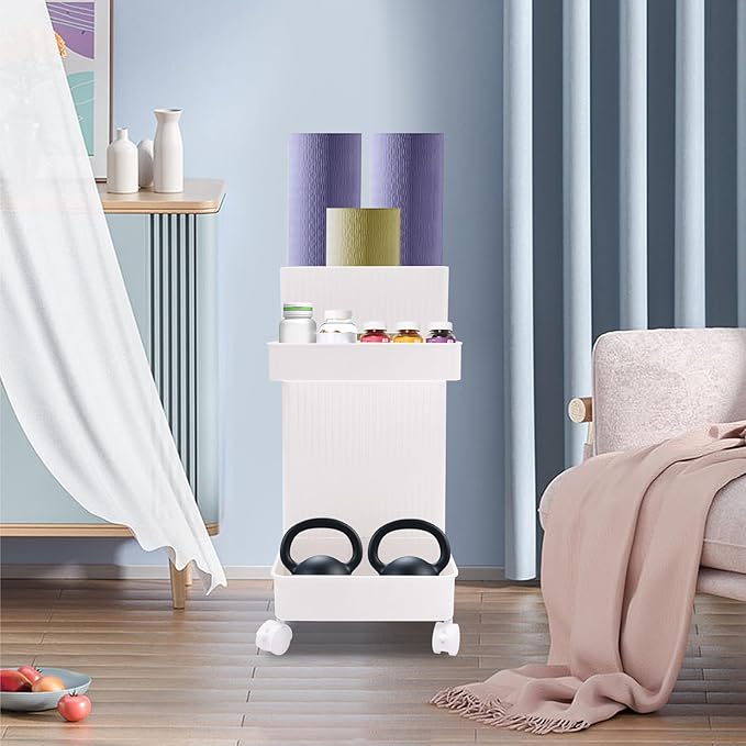 Yoga Mat Storage Rack with Wheels, Weight Cart Stand Small Gym Racks Yoga Racks, Storage Organizer Home Gym Equipment for Homes, Gyms, Schools (White)