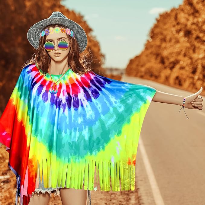 • Hippie Costume Accessories: you will receive 1 pieces of hippie flower ring headband, 1 pieces of boho wristband, 1 pieces of peace sign necklace, 1 pack of round hippie glasses and 1 pair of peace sign earrings, colorful and vibrant, which can help you achieve an entire hippie outfit, showing your hippie feeling and enjoy the party.