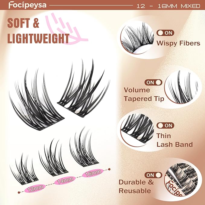 • About Focipeysa DIY lashes cluster: If you have any questions with your cluster lashes extensions, please let Focipeysa know, we are responsible for our individual eyelashes and your beauty. Thank you for choosing Focipeysa eyelash extension