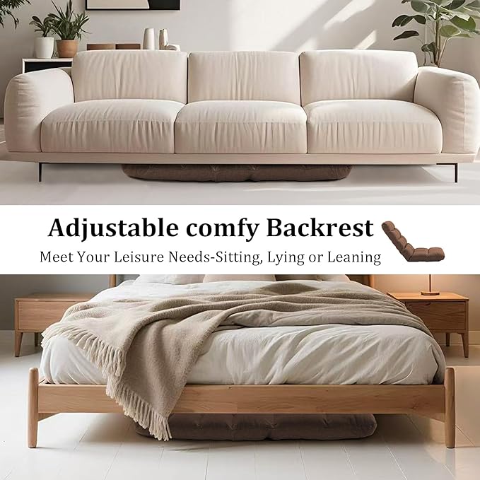 Folding Floor Chair with Back Support, 14 Adjustable Positions, Breathable Padded Sleeper Bed, Couch Recliner, Gaming Sofa Chair for Adults & Kids, Perfect for Meditating, Reading, Living Room (Brown)