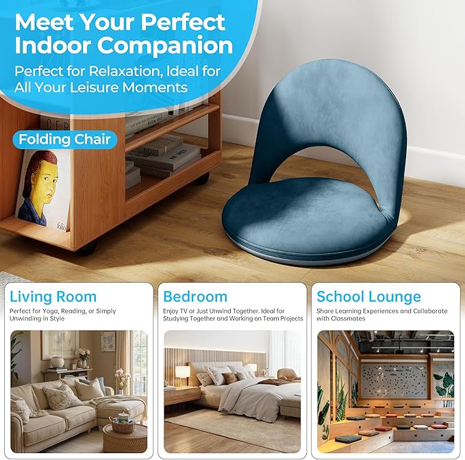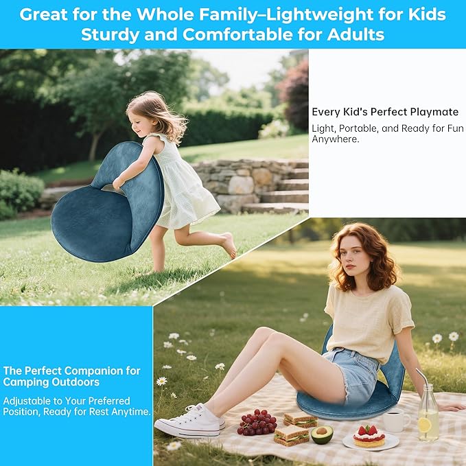 Floor Chair, 5-Position Foldable Floor Chair for Kids with Adjustable Back, Soft Sponge & Velvetean Cover, for Adults and Kids, Indoor Outdoor Use, Meditation, Gaming, Camping(Blue)