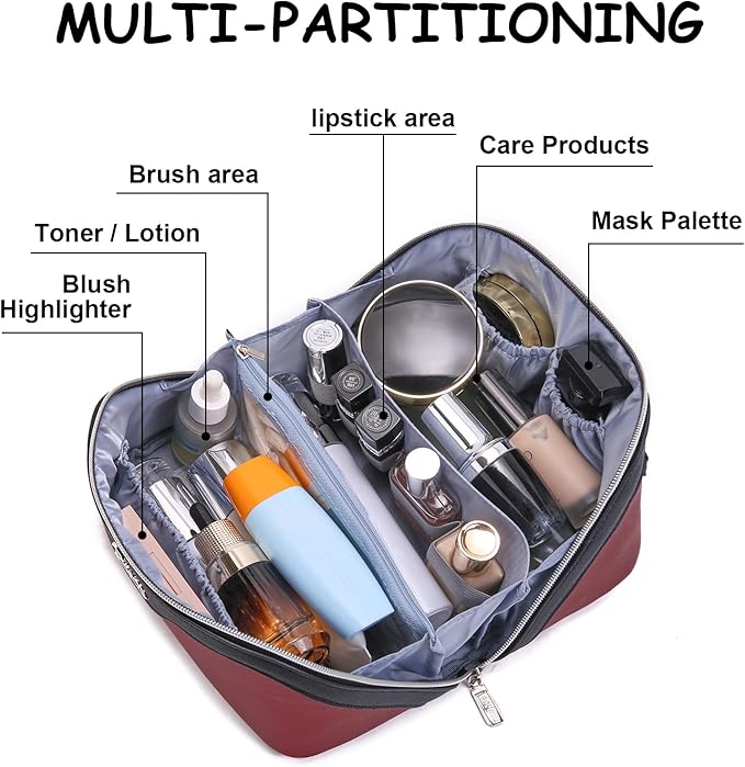 • Travel Makeup Bag Set of 3: This BOYATU travel makeup bag with five compartments comes with two small makeup pouches, ensuring optimal organization for your skincare products and cosmetics. Nice for your travel, business trips, vacations, outdoor activities and picnics.