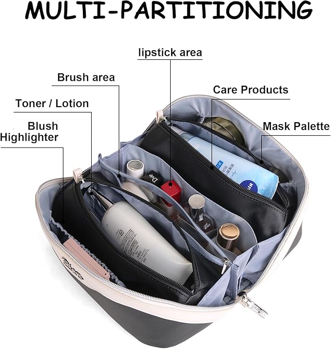 • Travel Makeup Bag Set of 3: This BOYATU travel makeup bag with five compartments comes with two small makeup pouches, ensuring optimal organization for your skincare products and cosmetics. Nice for your travel, business trips, vacations, outdoor activities and picnics.