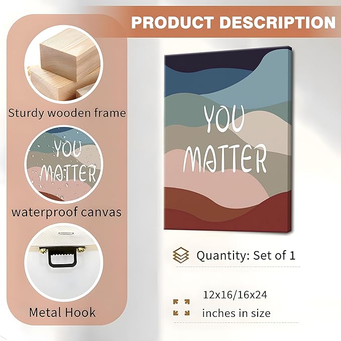 • 【You Matter Inspirational Wall Art】 This framed canvas wall art features the uplifting "You Matter" message, promoting positivity, motivation, and self-worth. Perfect for bedrooms, home offices, meditation rooms, or any personal space.
