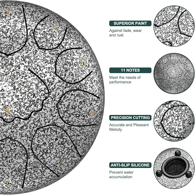 • HIGH-QUALITY CRAFTSMANSHIP: Expertly crafted, this 8-inch chakra drum for rain is made from titanium alloy and coated with paint for exceptional corrosion and rust resistance, and can withstand various weather conditions. Each steel tongue drum is hand-tuned and precisely cut to ensure achieve accurate tones and harmonies.