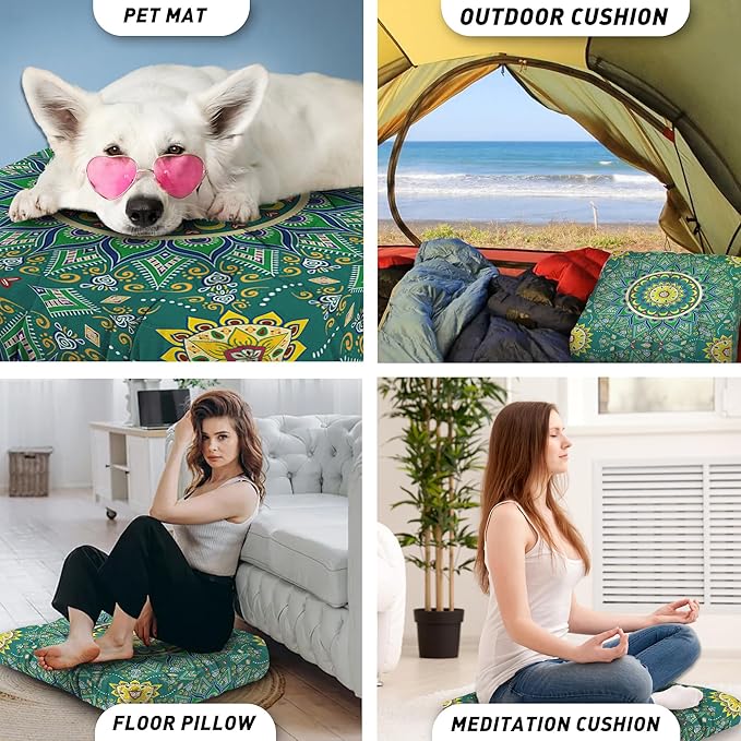 • Convenient Handle for Easy Moving: Sturdy handle allows you to transport your large floor cushion easily. It assists removing and replacing the cover after washing. The handle adds functionality to this square floor pillow. The handle also provides the option to hang this mandala meditation cushion and convenient and attractive storage!