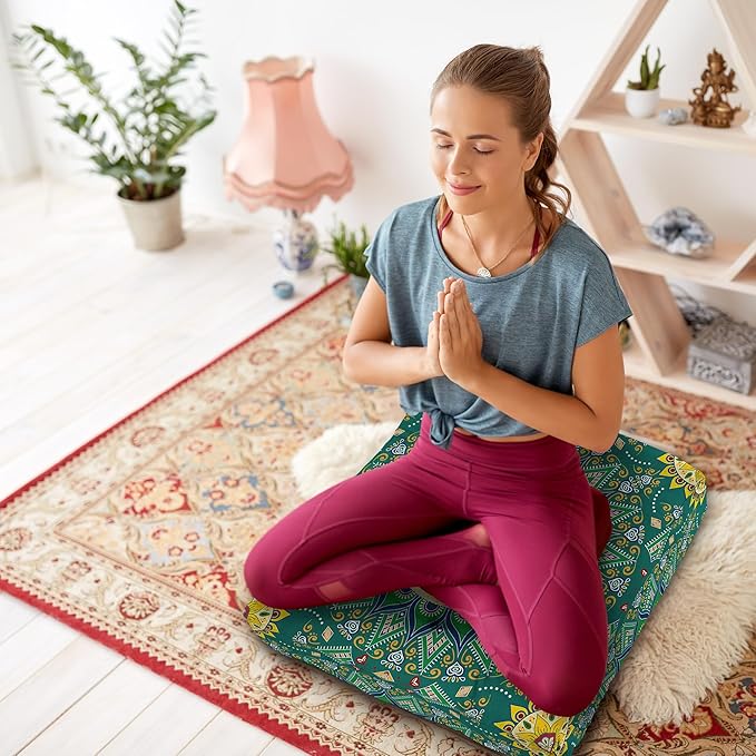 Mandala Meditation Cushion, Boho Meditation Mat, Meditation Pillows for Sitting on Floor, Cushions for Sitting in Home and Outdoor, Square Floor Pillows Cushion Seating for Yoga 22'' X 22''