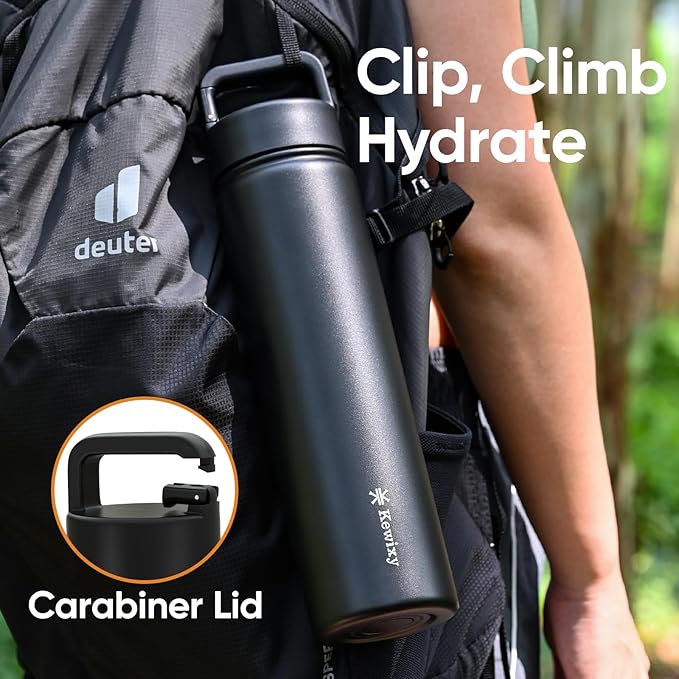 • [Clip-It Carabiner Lid]: Clip it securely to backpacks, gym bags, or belt loops—no more fumbling with loose bottles during outdoor activities. Insulated water bottle sturdy and reliable, it offers essential hands-free convenience for adventures.