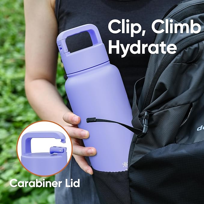 • [Clip-It Carabiner Lid]: Clip it securely to backpacks, gym bags, or belt loops—no more fumbling with loose bottles during outdoor activities. Insulated water bottle sturdy and reliable, it offers essential hands-free convenience for adventures.