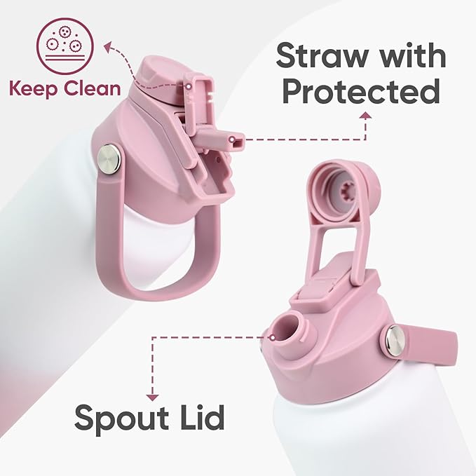 • [2-in-1 Lid with Protected Cover]: Sip or chug—both the straw & spout stay covered under a secure, flip-up shield, keeping every gulp clean whether you're commuting or in class. Leak-proof construction ensures no spills, keeping your bag dry wherever you go.