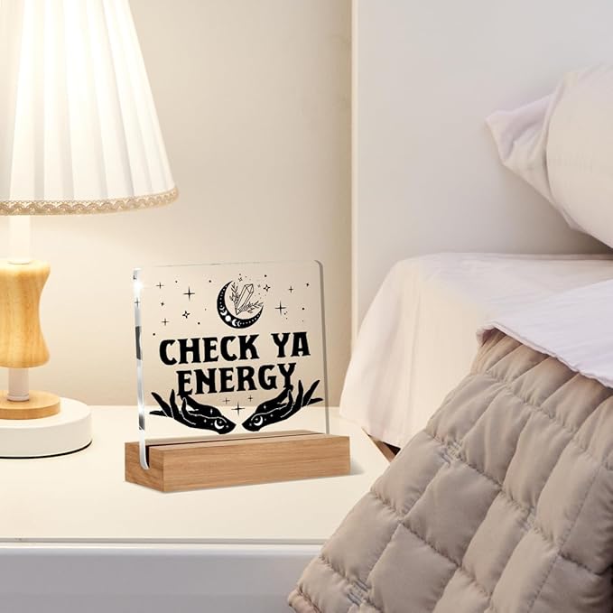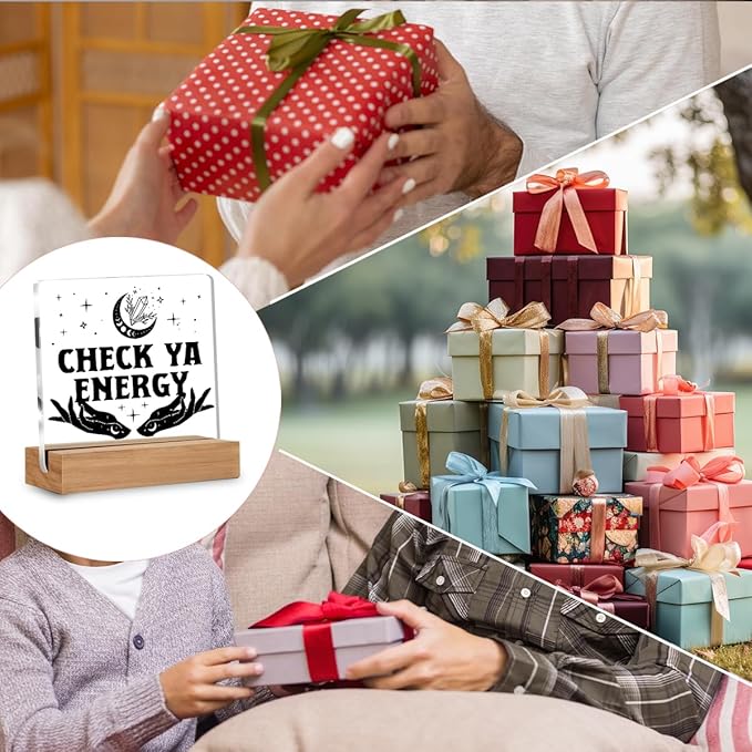 Witchy Gifts for Women Men, Spiritual Witch Gifts, Check Ya Energy Witchy Desk Decor Acrylic Plaque for Home Office Room