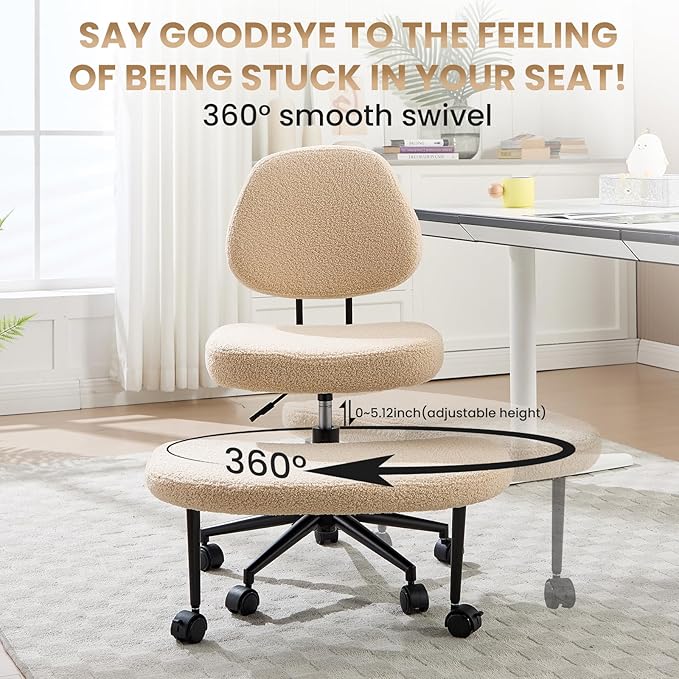 Ergonomic Cross Legged Office Chair, Criss Cross Chair for Meditation ADHD and Yoga, Home Office Desk Chair with Brake Wheels, Adjustable Height, Beige