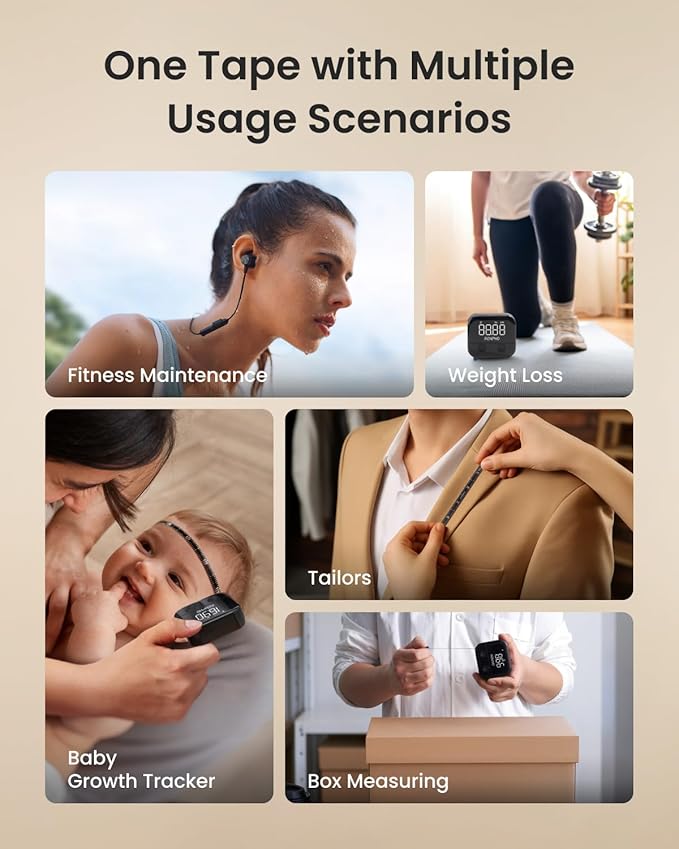 • Versatile Usage: This digital tape measure is perfect for weight loss enthusiasts, expectant mothers, fitness lovers, professional trainers, and bodybuilders—catering to a wide range of health and fitness needs.