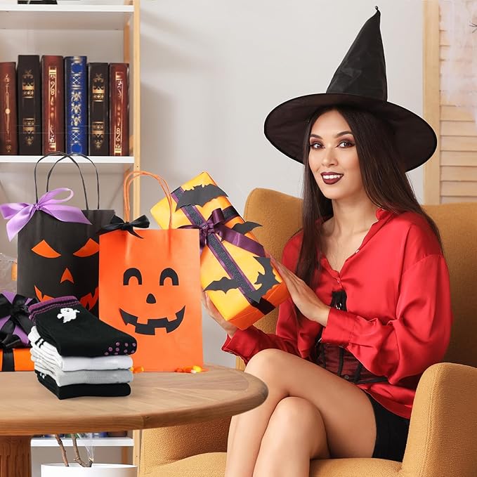 • Cute Halloween Socks: These Halloween crew socks feature spooky Boo patterns and classic strip design, which can be added more festive atmosphere. These gripper socks are ideal gifts for family or friends, especially those who love indoor workout such as pilates and yoga, as well as hospital socks for the elderly, pregnant women, and patients. These women’s socks are perfect for Boo spooky basket stuffers, festive outfits, or just as normal socks to pair sneaker shoes.