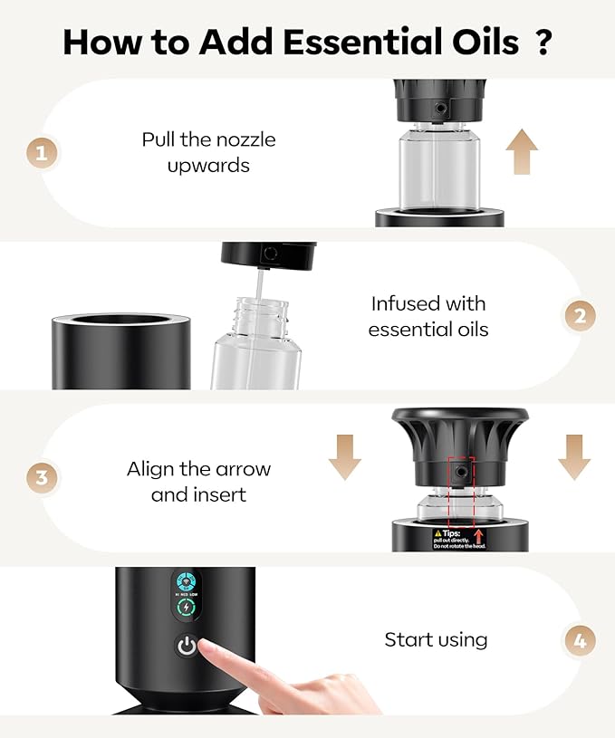 • REMOTE CONTROL FUNCTION: Effortlessly manage your waterless essential oil diffuser using buttons, remote control, ensuring convenience no matter where you are in the room. Enjoy the flexibility to set your hotel diffuser for 1H/4H/8H timers , allowing you to customize your aromatherapy experience for optimal comfort and relaxation