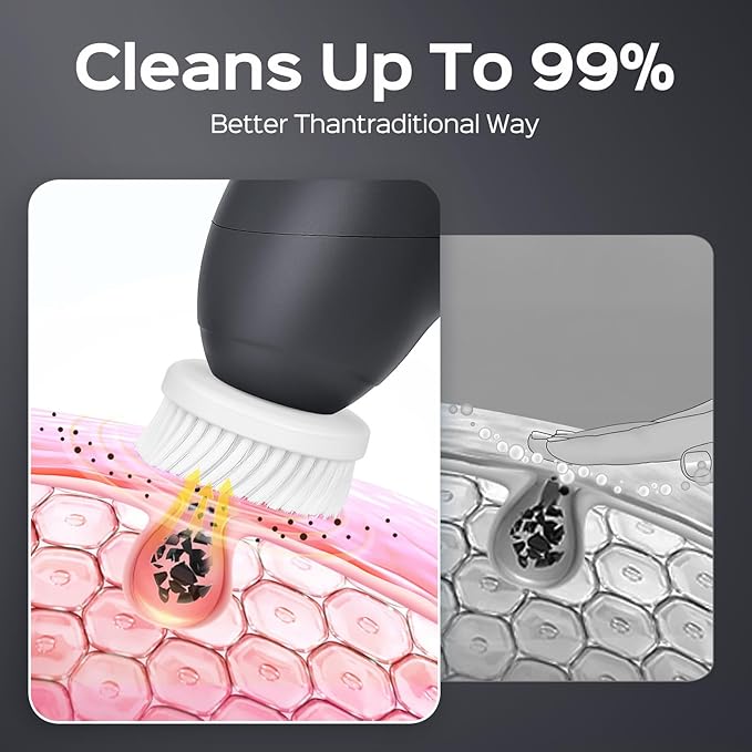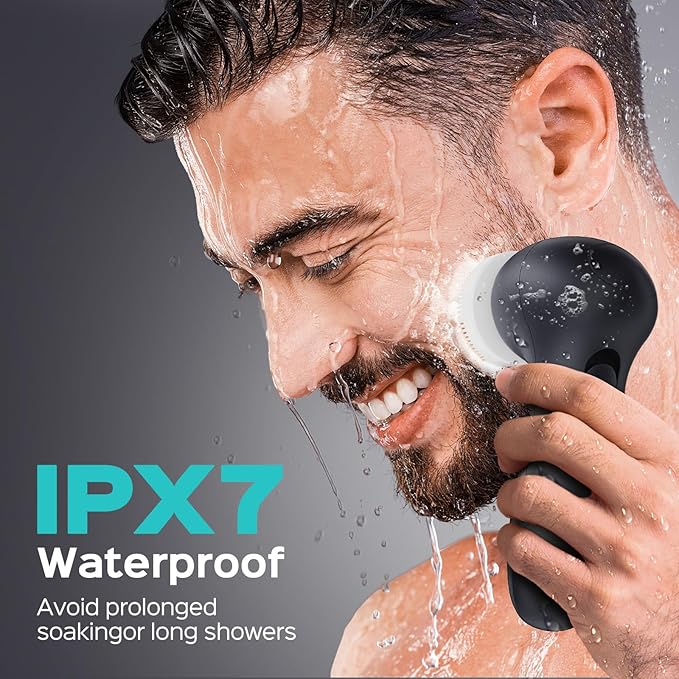 • Waterproof & Portable for Travel and Shower Use Engineered with 100% waterproof design, this rechargeable cleansing brush is safe for shower use, making skincare routines easier and more efficient. Its lightweight, compact body fits perfectly into travel bags, ideal for business trips, vacations, or gym use. With cordless convenience and long-lasting durability, it offers hassle-free cleansing wherever you go. From home bathrooms to post-workout cleansing at the gym, this face scrubber ensures consistent care for men, teens, and those with sensitive or oily skin on the move