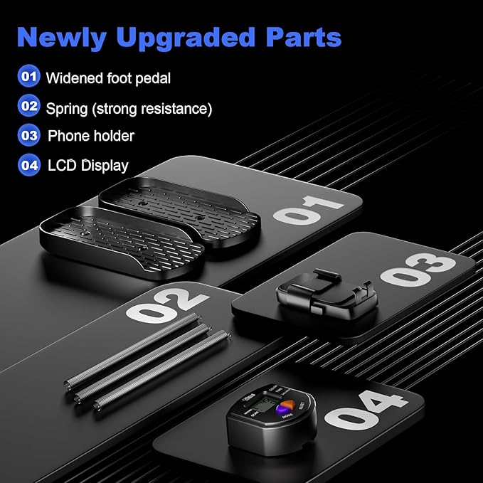 • 【Concerned About Stability?】 Step with confidence on this stair master ,extra-wide pedals (30% larger) with anti-slip surface ensures your feet stay firmly in place, even during intense exercises. Ideal for fast-paced home workouts where safety is a must.
