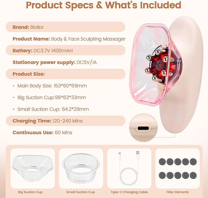 • ✨【3-in-1 Body Sculpting & Massage Tool】 This cellulite massage tool & body sculpting machine combines scraping, massage, and suction in one device. It helps smooth cellulite, firm loose skin, and relax muscles, giving you spa-quality body sculpting results at home