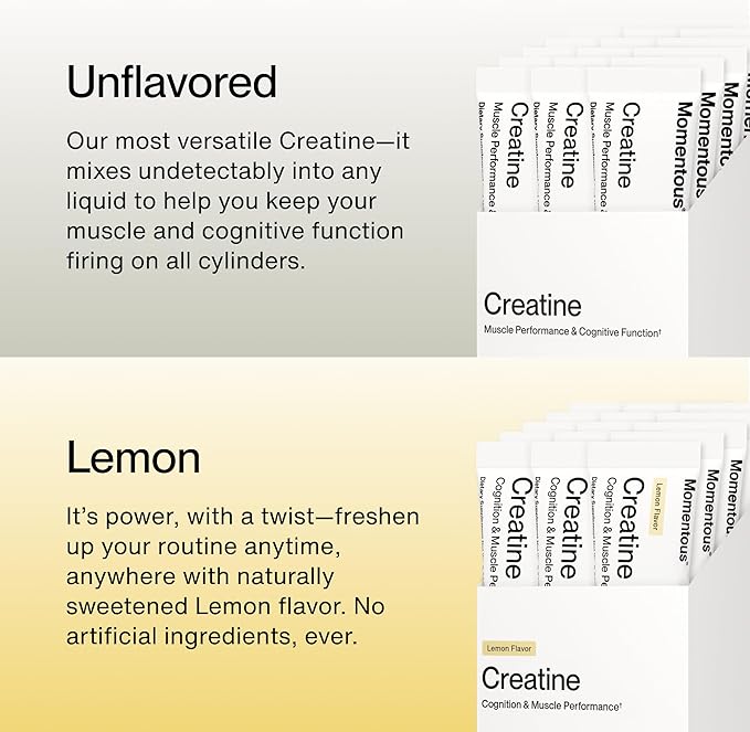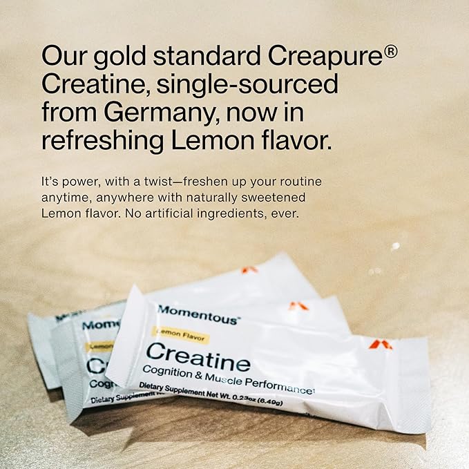 • New Naturally-Flavored Lemon Creatine - Gold-standard Creapure in refreshing, lemon-flavored single-serve packs designed for brain & body performance, anywhere you go - just add water & shake.