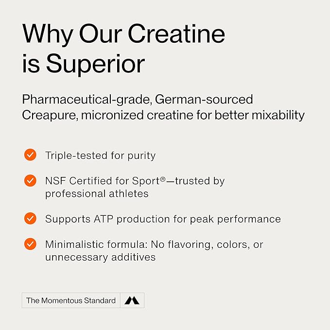 • Build Lean Power - Help elevate your workout results with Momentous Creatine Powder for men & women. It helps enhance post-exercise protein synthesis, fostering the growth of lean muscle mass & quicker recovery times. Excellent solubility & zero taste.
