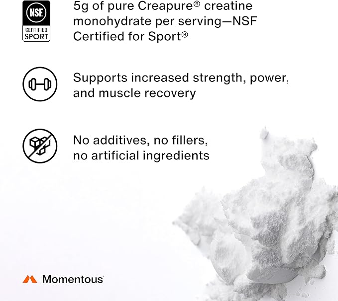 Momentous Creatine Lemon Monohydrate Powder - Creapure Creatine Powder - Supports Strength, Lean Muscle, & Recovery for Men & Women - NSF Certified for Sport - 6.49 g per Serving - 15 Servings
