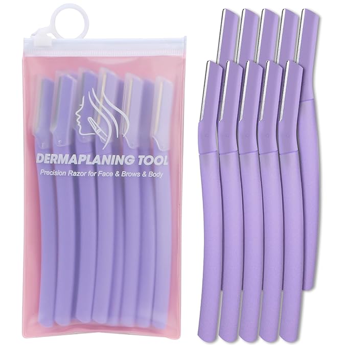 Precision Dermaplane Razor, Face Razors for Women and Men, Eyebrow Razor, Dermaplaning Tool, Peach Fuzz Remover, Skin-friendly Microblades with Protective Cap, 10 Count (Wisteriar)
