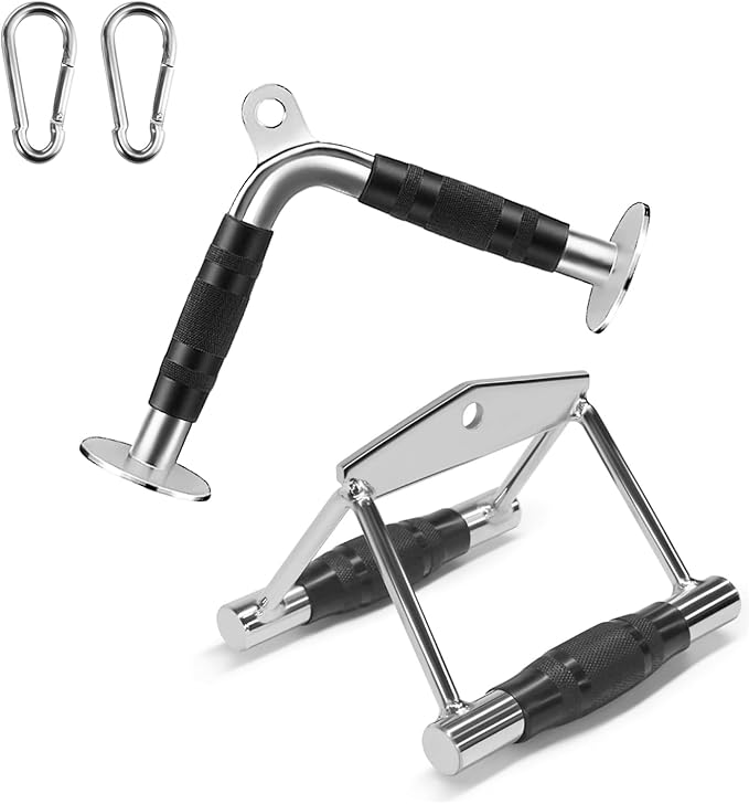 • 💪【Lat Pulldown Attachments Set】: Includes:1x Double D Handle, 1x V-Shaped Bar and 2x Snap Hooks . These home gym accessories for men and women are designed to fit most cable systems.