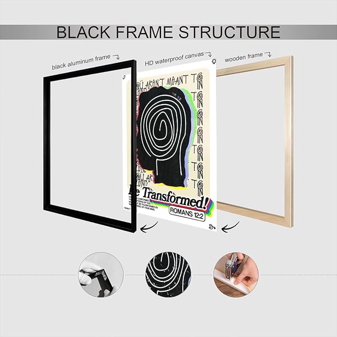 • Christian Inspiration: Featuring the powerful message of "Be Transformed" from Romans, this abstract wall art serves as a daily motivational reminder rooted in religious scripture, perfect for personal devotion or church settings.