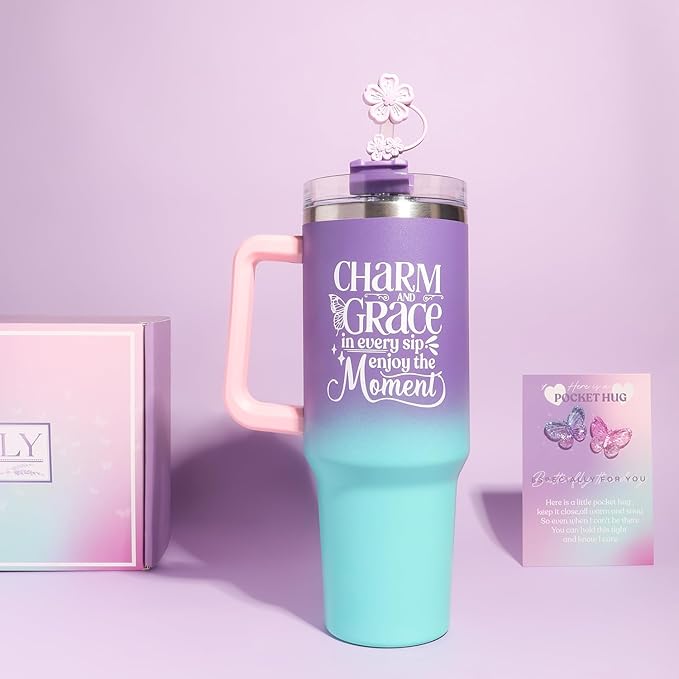 • 【40oz Practical Insulated Tumbler with Lid】: Made of 304 stainless steel, the 40oz insulated tumbler with double-layer vacuum insulation technology can keep beverages at the perfect temperature for hours, whether hot or cold. Since the cup lid is not sealed, the tumbler cannot be turned upside down. The sturdy handle offers a comfortable grip. Positive and uplifting blessings printed make it an ideal relaxation gifts for her, ideal for a peaceful morning or a cozy evening moment