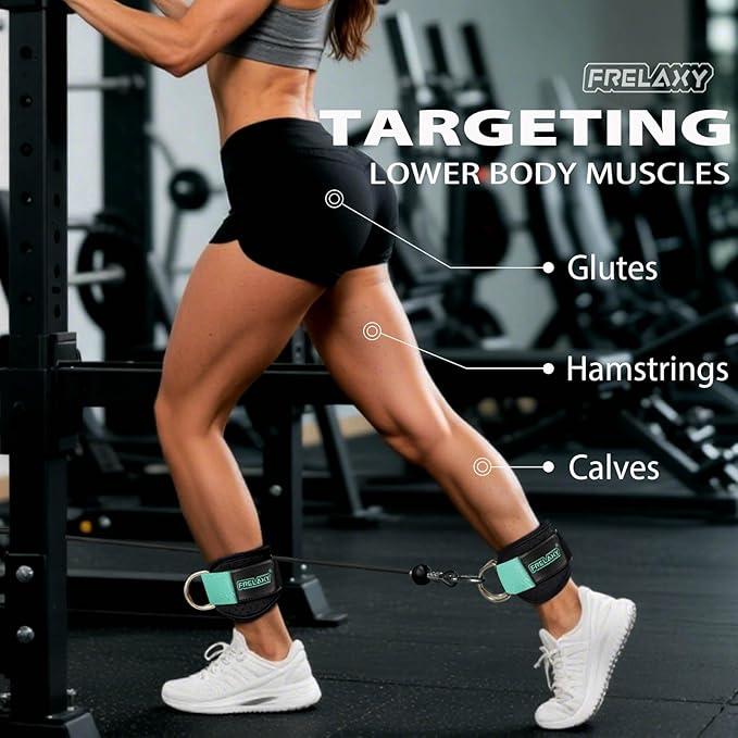 Frelaxy Ankle Straps for Cable Machine – Comfortable & Durable Leg Straps for Kickbacks, Glute Workouts, and Lower Body Exercises – Perforated Neoprene Padding & Tapered Fit