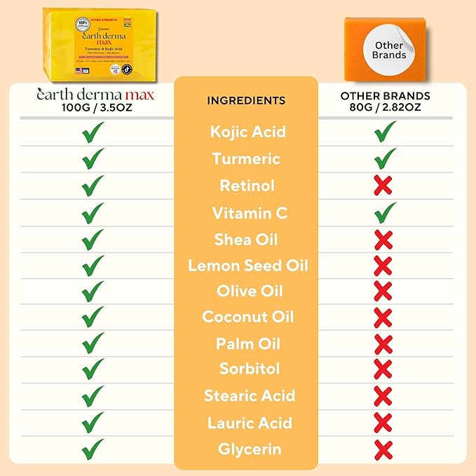 Earth Derma Max Beauty Turmeric & Kojic Acid Dark Spots Fading Bar, Extra Strength Formula with Retinol, Vitamin C, Shea Oil, Designed in USA