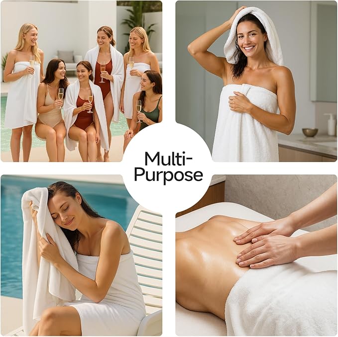 • 【Ergonomic Hotel Design】Extra-large 31.5x62.9IN bath sheets with reinforced hemming provide full-body coverage, while matching washcloths offer salon-grade facial care.