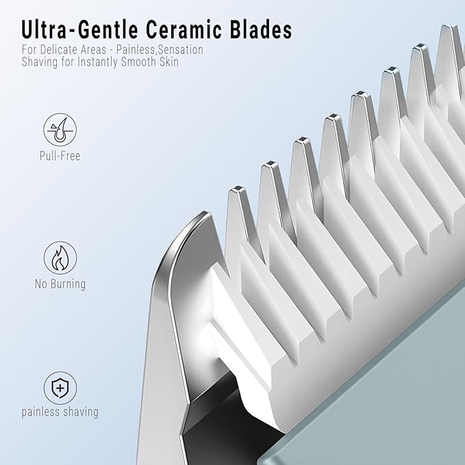 • 【Hypoallergenic Bikini Razor | Painless & Smooth】Engineered as a hypoallergenic bikini razor, this shaver for women guarantees zero tugging or irritation. Its medical-grade ceramic blades glide seamlessly over sensitive skin and private areas, offering a painless pubic hair trimmer experience that erases redness and bumps for silky results.