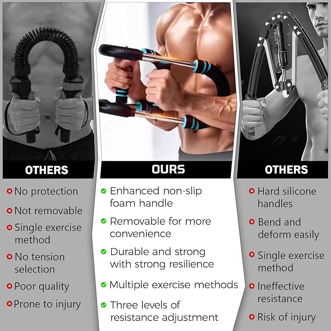 • 【More ergonomic】Our 2025 upgraded arm and chest muscle trainer is engineered for comfort and control. The curved ergonomic grip, skin-friendly foam padding, and optimized resistance angles reduce strain while enhancing performance. It fits naturally in your hands and follows your body’s motion—no more awkward workouts, just smooth, effective strength building.