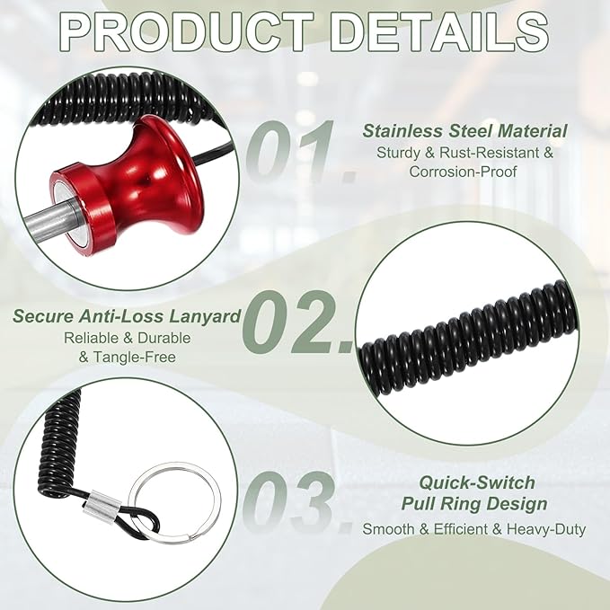 • EASY TO USE - Simply insert the gym pins into your weight stack's selected plate - the magnetic tips automatically secure them in place. The attached pull ropes allow quick adjustments between exercises without removing the pins completely.