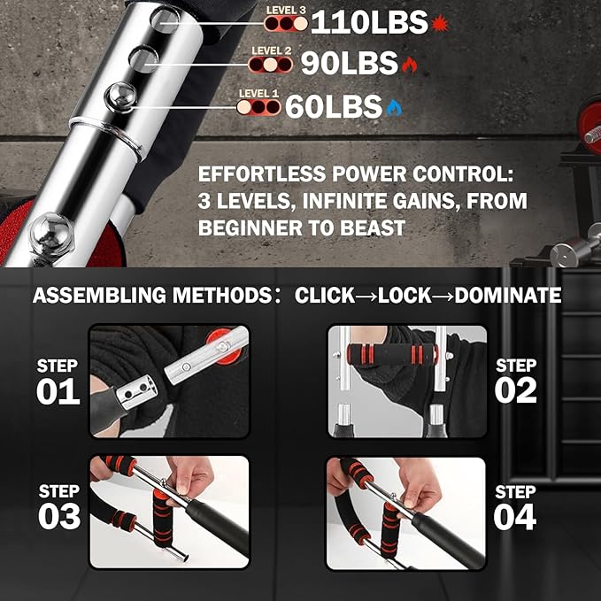 • 【60/90/110LB & Scientific Progression, Precisely Matches All Stage Goals】: This forearm strengthener and chest workout equipment offers three resistance levels for free adjustment, precisely matching users of all stages – men/women, beginners/pros. Progress from recovery warm-up to fat-loss shaping to intense muscle gain, using this forearm trainer and witnessing growth step by step.