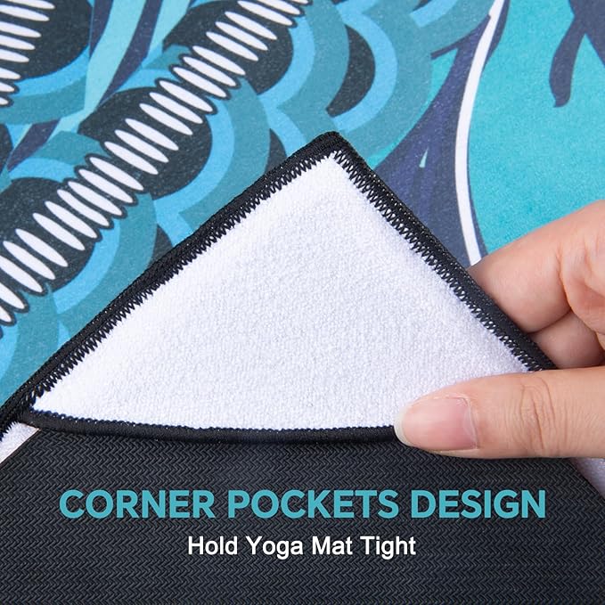 • Corner Pockets Design: Features 4 corner pockets on the backside, the non slip yoga mat towel helps secure and hold onto the mat firmly. This allows you to focus your mind, body and breath on the yoga practice, without worrying about bunching.