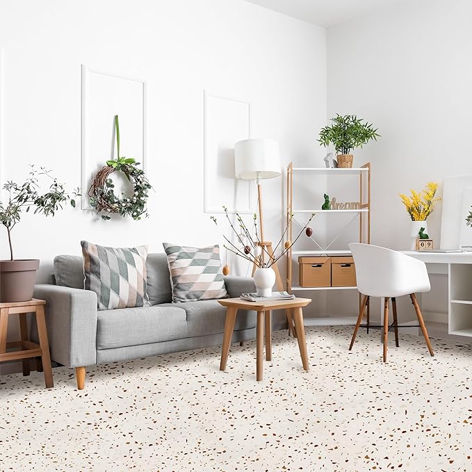 • Easy to Install: Easy do-it-yourself installation, no adhesive needed — Interlocking flooring mats wood tiles set up in just minutes — Printed Film material is OPP 100% Plastic, Mat is 100%PE — Lightweight and portable — Durable enough to withstand common foot traffic — Waterproof and non-absorbent — Easy to clean — Each tile measures approximately 24"L x 24"W (Entire Unit Covers 48 Sq ft)