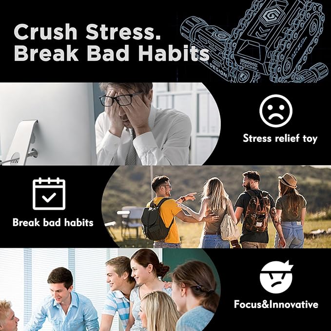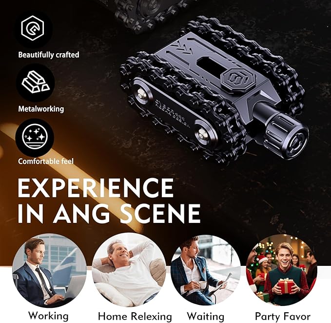 • 【COOL TANK DESIGN - PERFECT GIFT】Stand out from boring fidgets! Pain stim features a unique, industrial-style mini tank aesthetic with realistic chain treads. This isn't just a toy, it's a stylish accessory and conversation starter. The 1 Gift Choice for Men, Dads, Teens, Gamers, and Colleagues on Birthdays, Christmas, Father's Day, Stocking Stuffers, or Just Because!