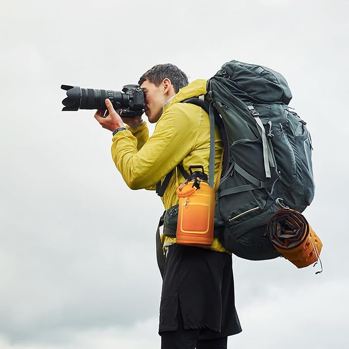 • VERSATILE AND STYLISH CARRIER BAG:The colorful water bottle carrier bag is designed to match the bottle's body, adding a touch of flair while providing practical functionality. The shoulder strap and carabiner make it easy to carry and hang, whether you're out on a hike or running errands. Plus, the small storage bag for your phone and a hook for keys make this bottle even more versatile.